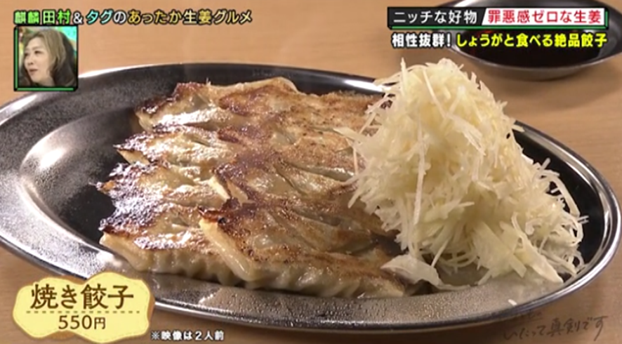 2軒目は、梅田の路地裏にあるぎょうざ専門店。看板の焼きぎょうざには、しょうが好きにはたまらないこの店独自のこだわりの食べ方が…。さらに“田村スペシャル”では、「しょうがの清涼感をもっと感じてほしい」と店主が考案した「焼かないしょうが焼き」が登場!スタジオのやすともも「これ絶対おいしい!」と前のめりに!