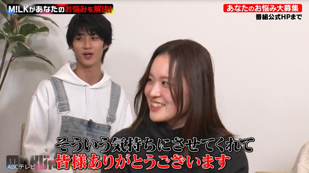 なお、新婚ホヤホヤ夫婦の危機を見事救ったM!LKの大奮闘は、彼らのABCテレビ初冠番組『M!LKじゃん!』1月13日深夜放送回で紹介された。