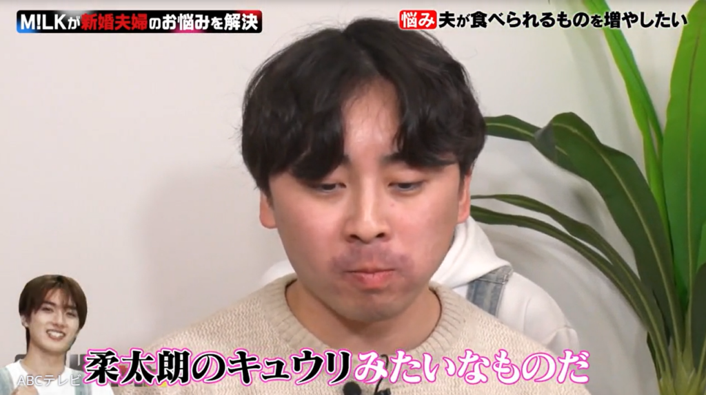 依頼者は、去年結婚したばかりだという新婚ホヤホヤ夫婦。29歳の夫が極度の食わず嫌いなため、妻は「料理のレパートリーがかなり少なくなってしまい困っている」「健康面でも不安」だという。「夫が食べられる新しいものを増やしてほしい」と相談してきた彼女に、M!LKは思わず笑ってしまい、「園児連れてきた?」「29ちゃい?」とツッコんだ。