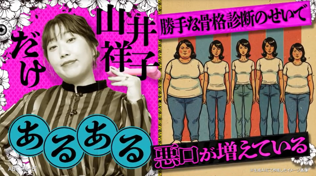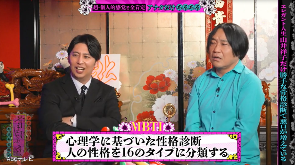 そんな山井が語った“汚い膿みたいに溜まった独自あるある”の1つは、骨格診断やパーソナルカラー診断、MBTI診断、顔タイプ診断といった“診断”関係だ。彼女いわく、「普通にしゃべっていても、『祥子は骨格○○だからこういう服が似合うよ』とか勝手に診断される」「勝手な診断で悪口が増えている」という。また、「イジられるMBTIがある」らしく、「嘘のMBTIを言うようにしている人もいる」のだとか。