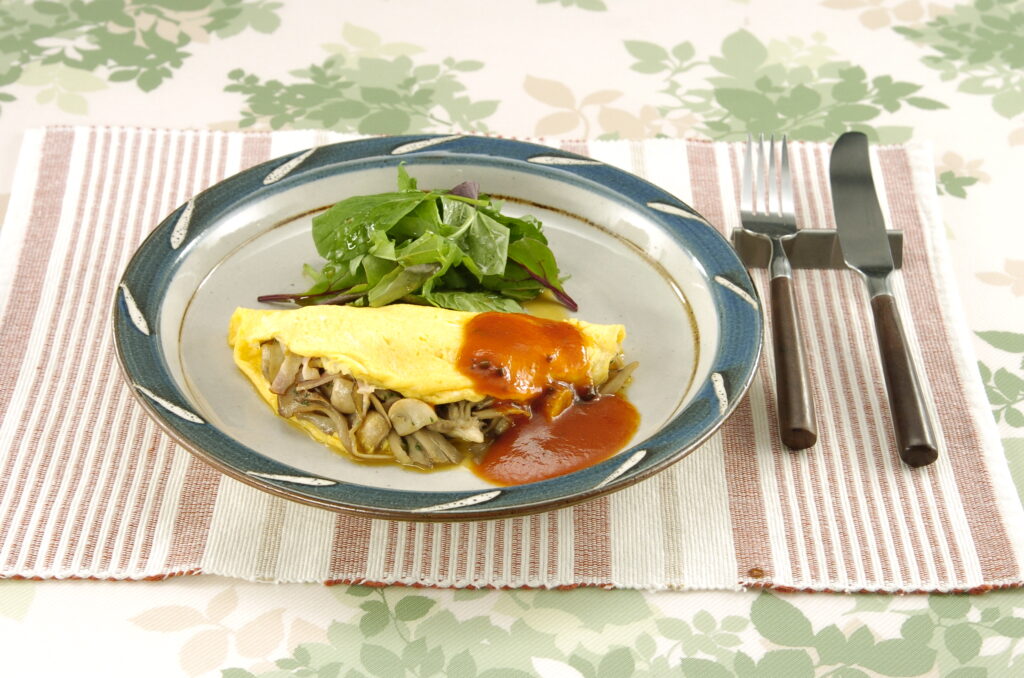 この日のテーマは「上手く作りたい!オムレツ」。たっぷりと包み込んだきのこがおいしい「きのこのオムレツ」を辻調理師専門学校の大西章仁先生から教わった。
