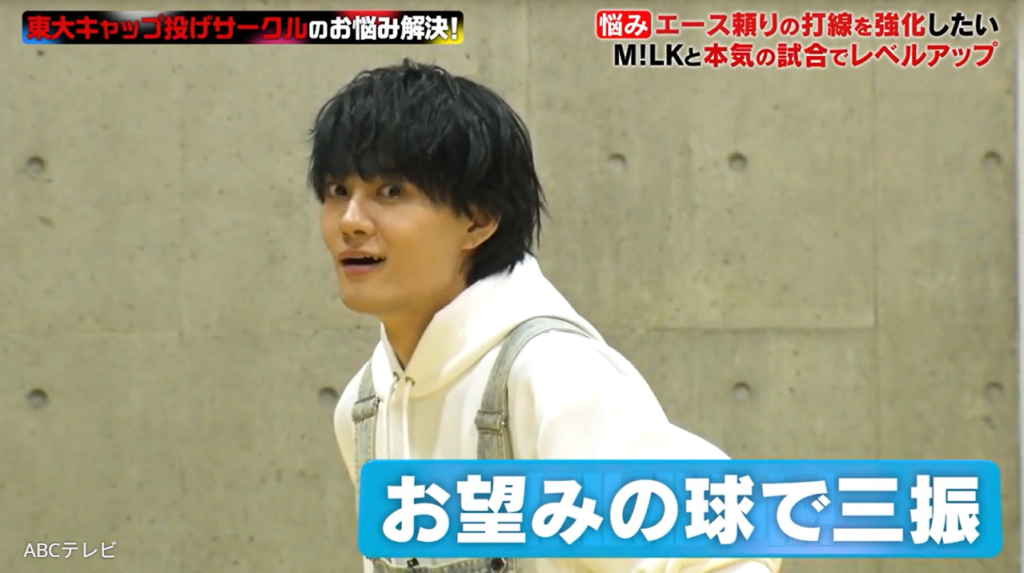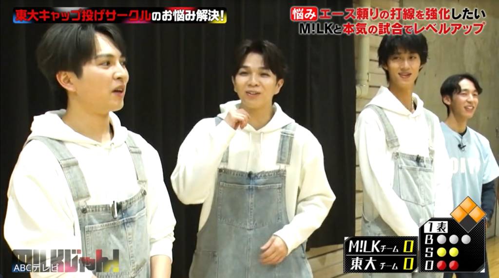 初出場ながら『NHK紅白歌合戦』を盛り上げた5人組ボーカルダンスユニット・M!LKが、東京大学の学生と本気で野球対決! 「朝ドラ」ことNHK連続テレビ小説で高校球児を熱演した佐野勇斗は、特に気合い十分で打席に立ったが……!?