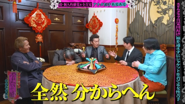 真栄田は「ジャケットに袖を通さずに肩から羽織っている女の人いるじゃないですか?」「あれ苦手です」と告白。寒い時などに革ジャンなどを肩から羽織る女性は「会議とかでも必要があって突っかかってくるんじゃなくて、突っかかりたくて突っかかってきそう」に見えるのだとか。その意見に屋敷も「俺もぜんぜん苦手です」と同意する。