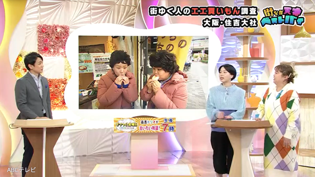 なお、住吉大社付近にいた人々のベストバイは、情報番組『newsおかえり』(ABCテレビ、毎週月曜~金曜午後3時40分より放送)内の「街なか天才ベストバイ」1月9日放送回で紹介されました。