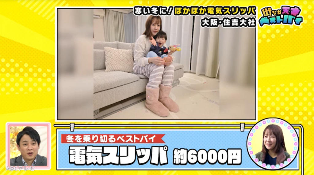 第2子の安産祈願で住吉大社を訪れていた女性のベストバイは、「買ってから家でずっと履いています」という、小型バッテリーで温まる電気スリッパ。約9時間も温かさをキープでき、バッテリーを外せば丸洗いできる、冷え性な人におすすめのアイテムです!
