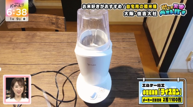 “イケボなエンドレスもちもちソング”をBGMに、天才ピアニストは縁起焼の女性スタッフにベストバイをインタビュー。白米が大好きな女性スタッフは、普段米を「玄米の状態で買って、家で食べる分だけ精米している」のだとか。彼女のベストバイは、ミキサーほどの大きさの小型精米機! 精米された米よりも優れている点について彼女は、「やっぱりお米のツヤとか……もちもち感が」と、歌につられて笑いながら教えてくれました!