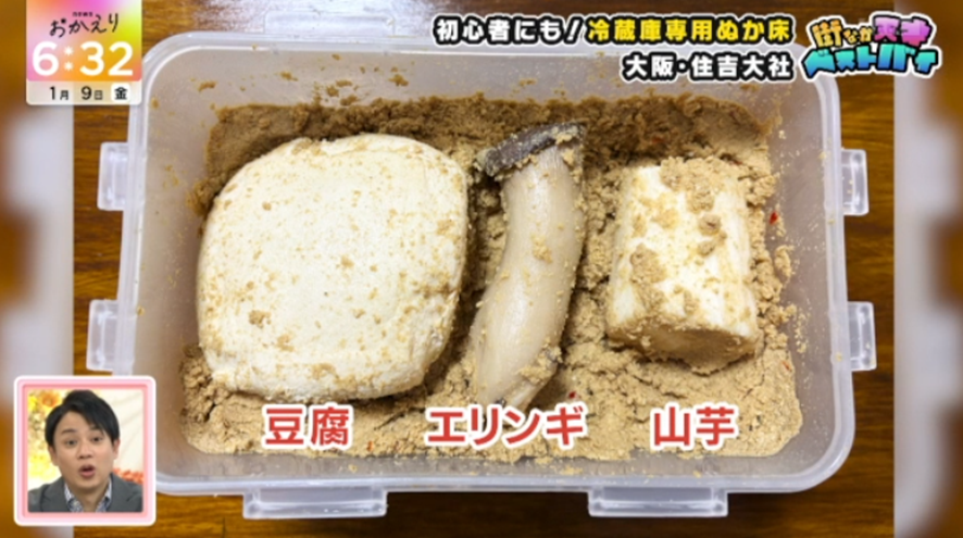 3歳の娘の七五三で住吉大社を訪れていた一家のベストバイは、冷蔵庫で育てる熟成ぬか床! ママいわく、「3~4日に1回混ぜるだけでいいから気軽に始めやすい」のだとか。彼女がよく漬ける食材は、なんとエリンギ、豆腐、山芋! ぬかで漬けたエリンギは、「食感がおいしくて気に入っています」とのことで、豆腐は「チーズみたいな感じで水分が抜けてギュッてなった感じ」で、娘も毎日食べるほどハマっているそうです。