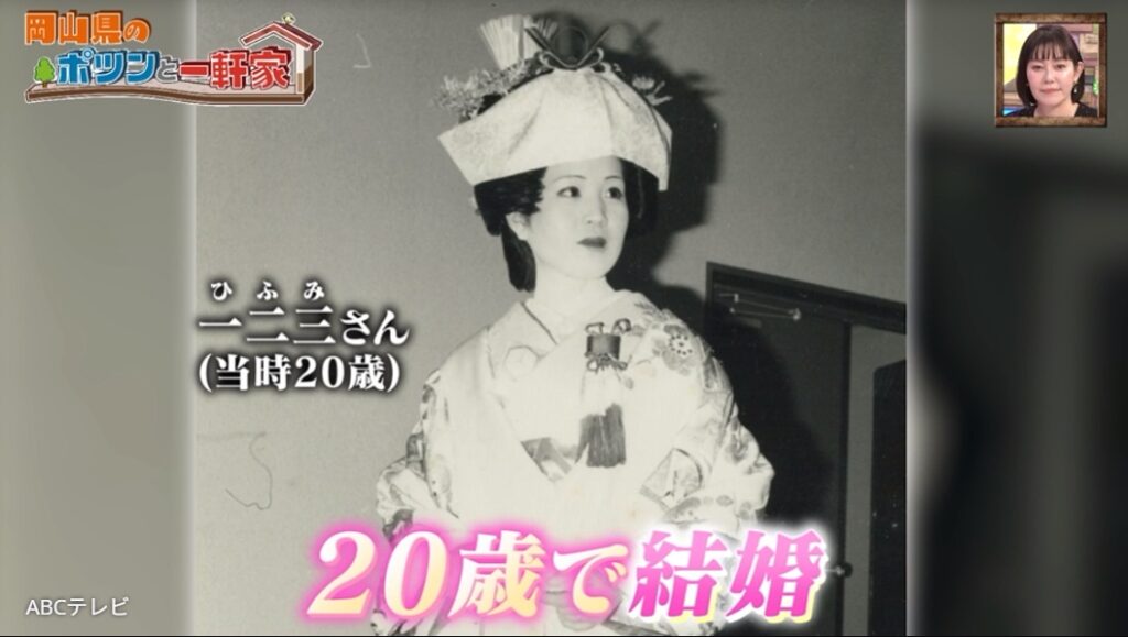 女性は中学を卒業した後に、岡山県内の縫製工場に就職。20歳で結婚し津山市へ移り、3人の子宝に恵まれたが、末娘が高校を卒業した後に離婚。病院で介護士として働きながら1人で暮らし、14年前60歳で病院を退職したのを機に、80歳を超えた両親を介護するため、この「ダムの上のポツンと一軒家」に戻ってきた。