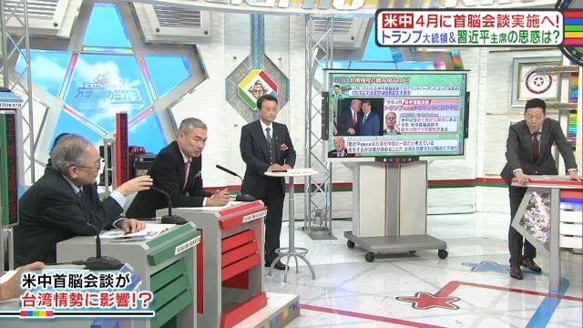この勢いで中国は、台湾進攻に踏み切るのか? 小原氏は、「4月に行われる米中首脳会談でグランドバーゲン(=大きな取引)によって決まる! 台湾が抵抗すればリスクが高まる!」と予想。なお、9年ぶりとなる訪中を予定しているアメリカのトランプ大統領は、「習近平国家主席は台湾を中国の一部だと考えている。何をするかは彼が決めることだ。台湾を攻撃すれば極めて不快だ」とインタビューで語っている。