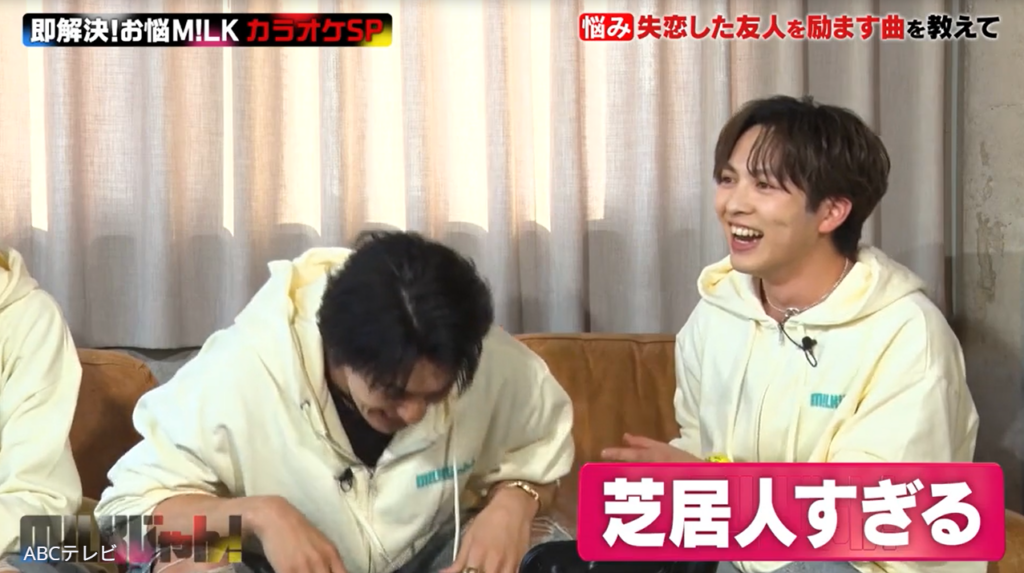 M!LKメンバーはもちろん、ファンも大盛り上がり。X上には、「別の人の彼女になったよ、メロすぎて泣きそうになったんだけど佐野さんのうわわわゎあ~ありさ~で引っ込んだ笑」「さのくん失恋エチュードのとき柔太朗がずっと『ありさ良い人やったよな〜』とか『おい、歌詞見ろよ』と画面見さすのほんまにおもろい」「さのじん失恋劇場の横でもぐもぐ食べている塩﨑さん、いいオリメン」「素直な舜太君『だっせぇ!!!!』←ドストレートで草」といった声が寄せられた。