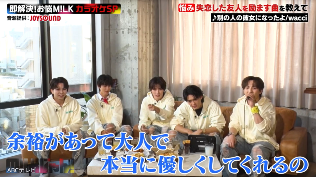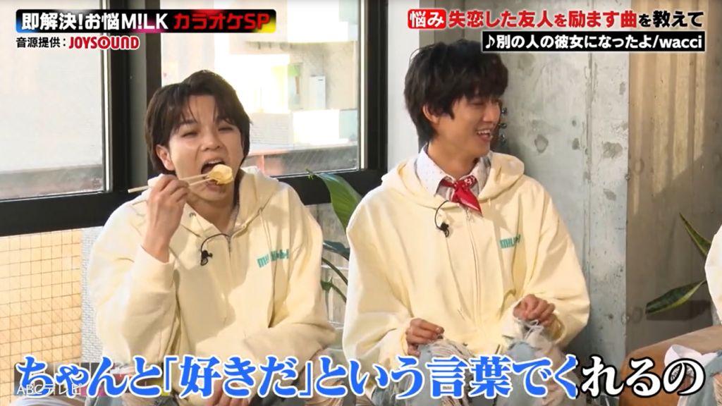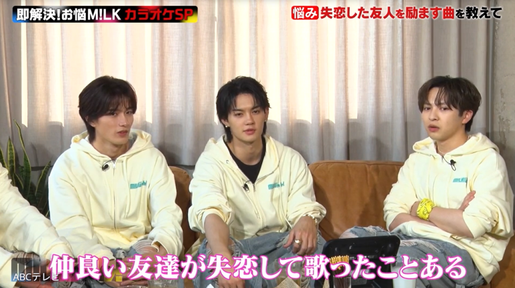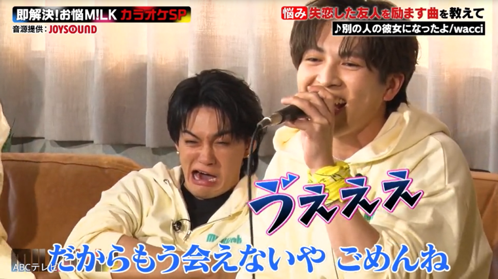 【TVer】M!LK山中柔太朗も失恋で傷心? 「初めてのキス覚えてんだろ!?」「元気出せ!」 曽野舜太が菅田将暉の『さよならエレジー』を歌って励ました結果は……!?