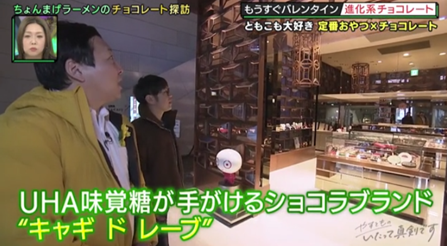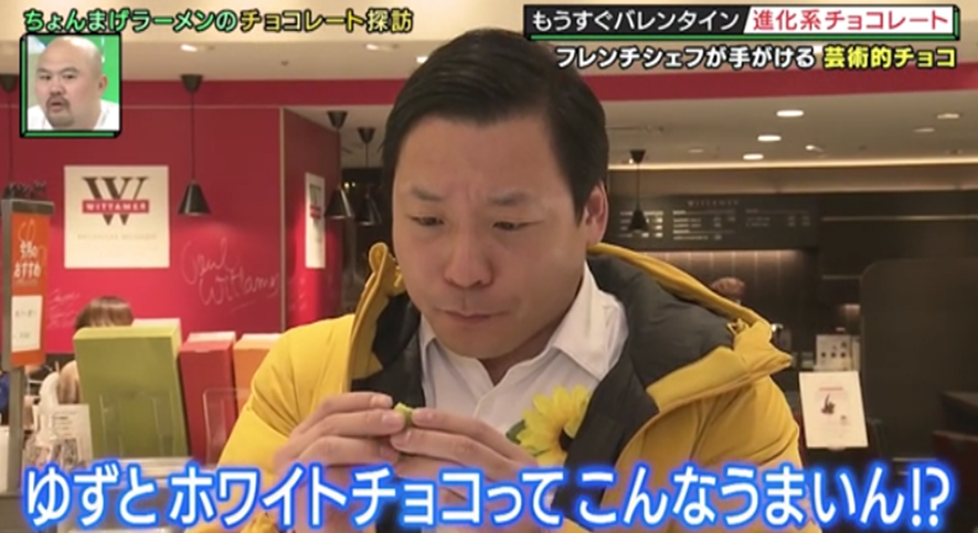 続いてやって来たのは、梅田の繁華街のど真ん中にある大丸梅田店。人気店がひしめくスイーツ激戦区“デパ地下”で勝負するホワイトチョコレートの専門店を訪ねる。京都のフレンチレストランが手がけるお店とあり、雅やかで色彩豊かなチョコスイーツはまるで宝石のよう。「めっちゃキレイ!」と目を輝かせる田渕ときむは、ホワイトチョコに栗や柚子などを合わせたオリジナリティーあふれるチョコスイーツに「うますぎる!」と悶絶!