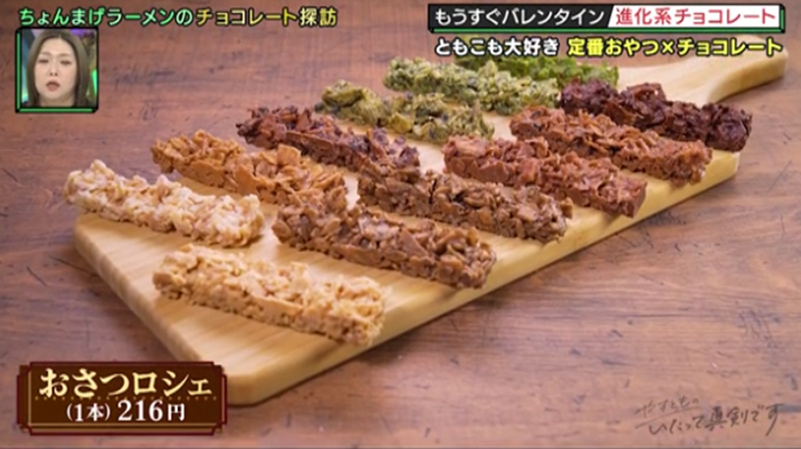 それは、熱烈なファンも多いあのロングセラースナック菓子にチョコをコラボさせたスイーツで…。歯ざわりも楽しいザクザク食感が「うまっ!まさに新感覚!」と田渕を色めき立たせた逸品の正体は?