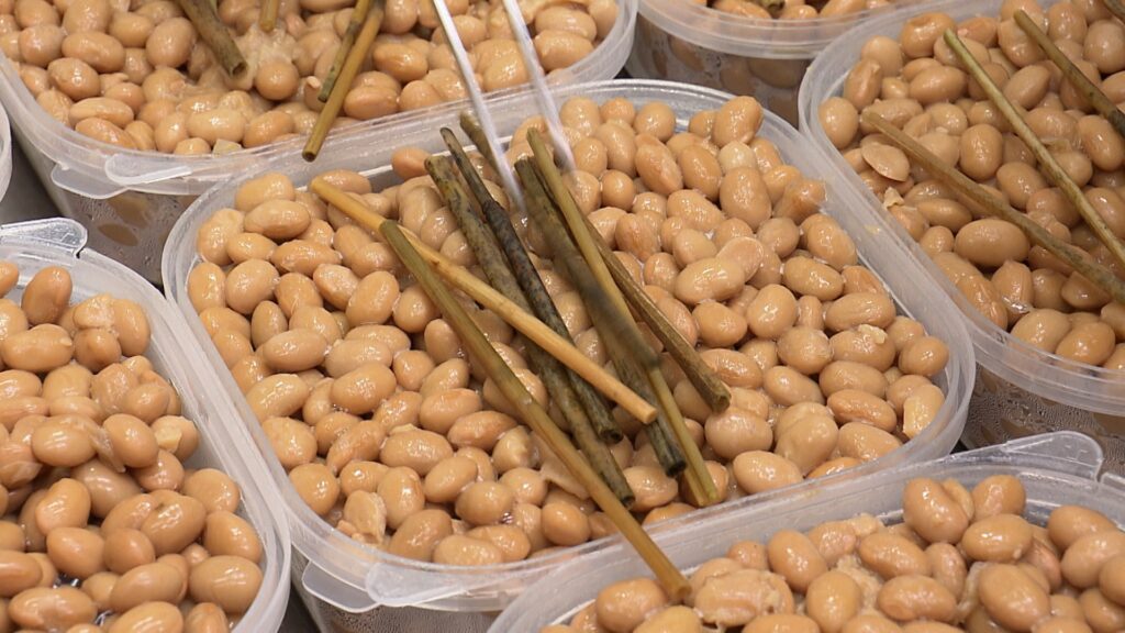 絶えずお客さんが出入りする「らくだ坂納豆工房」の一番人気は、町の名前を冠した「谷町納豆」。1パック500グラムと大容量で、稲わらに生息する天然の納豆菌を使って発酵させているのが特徴です。