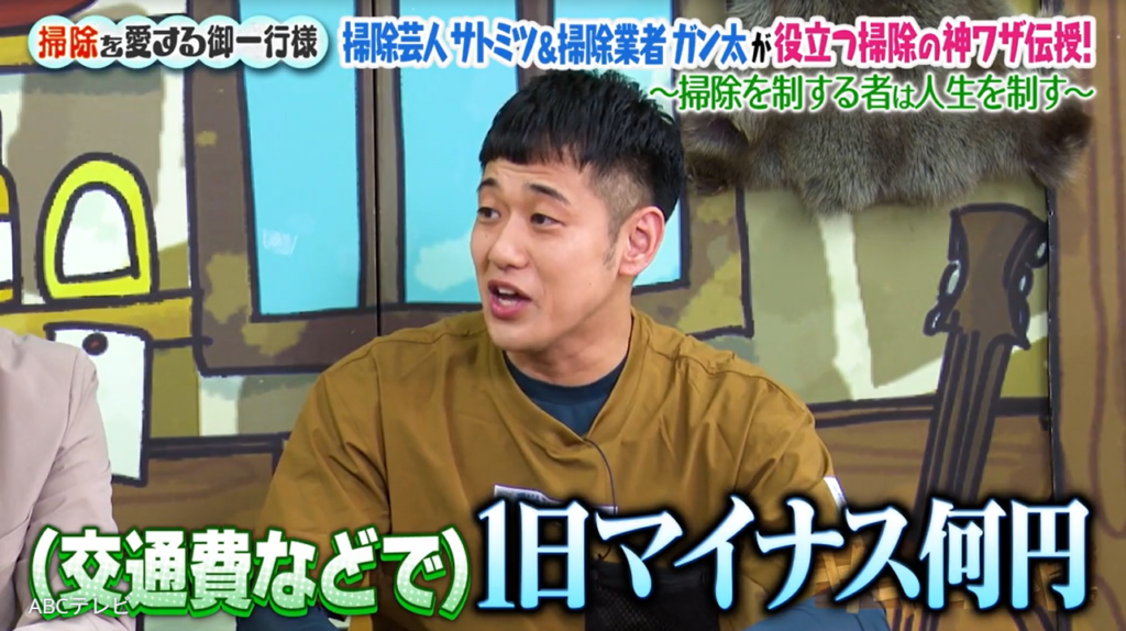 その後もお笑いの傍らアルバイトを続けたガン太さんは、「掃除歴を重ねたおじさんたちをごぼう抜き」し、掃除会社の圧倒的エースに! MCのザキヤマいわく「お笑いの現場に行ったらそんなに褒められない」ため、ガン太さんは「気持ちいい!」「脳汁みたいなの出ちゃって!」と喜びを感じ、2年前に独立したのだった。