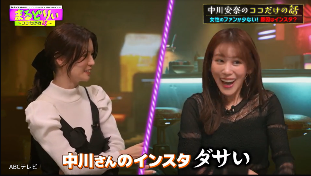 そんな中川のSNSのフォロワーは、97%が男性だ。中川は同性のフォロワーも欲しがっているが、切実な願いとは裏腹に投稿写真は、男性をドキッとさせる露出の高いものが多い。そのため井口とドリアンは、「ワキ見せね~」「豊満な胸元もね~」「スイカには負けへんでと」と、中川をイジりまくり。さらには、「古い」「ダサい」「グラビアでもしない」などと、写真のポーズについてもダメだしした。