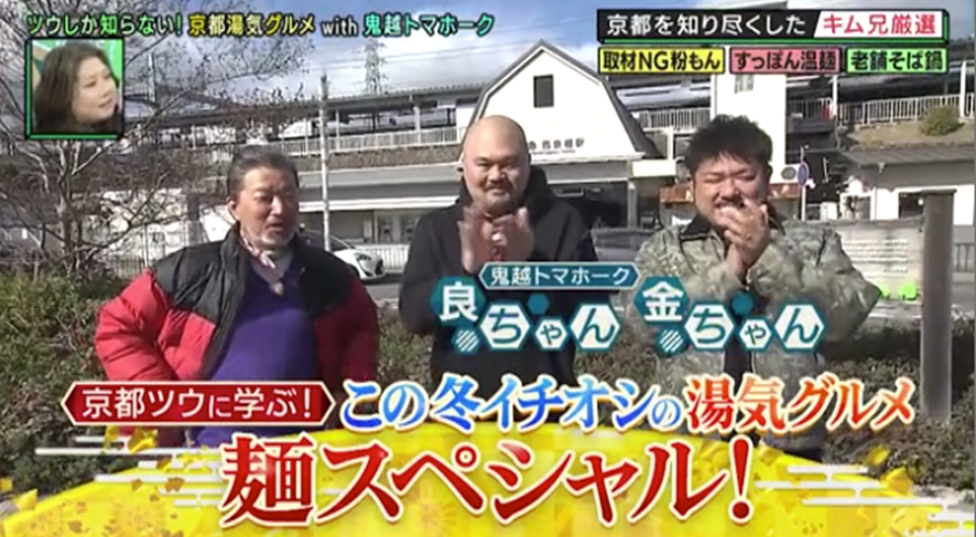 京都を知り尽くす“キム兄”こと木村祐一が、実際に通っているオススメの名店を紹介する大好評シリーズ! 今回は「京都ツウに学ぶ!この冬イチオシの湯気グルメ 麺スペシャル」と題し、寒い季節に恋しい“湯気グルメ”が評判の店に、東京からやって来た人気芸人・鬼越トマホークをご案内! 体の芯からポカポカになるあったか麺料理を堪能する。