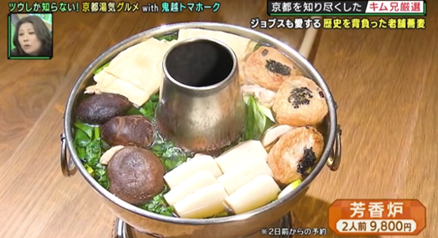 そして3軒目は、誰もが知るあの世界的セレブも訪れたというおそば屋さん。京野菜や湯葉など京都ならではの食材が存分に楽しめる、完全予約制の名物鍋を堪能した鬼越は、だしの旨みを吸った自慢の麺に「めちゃめちゃおいしい!」と悶絶する!