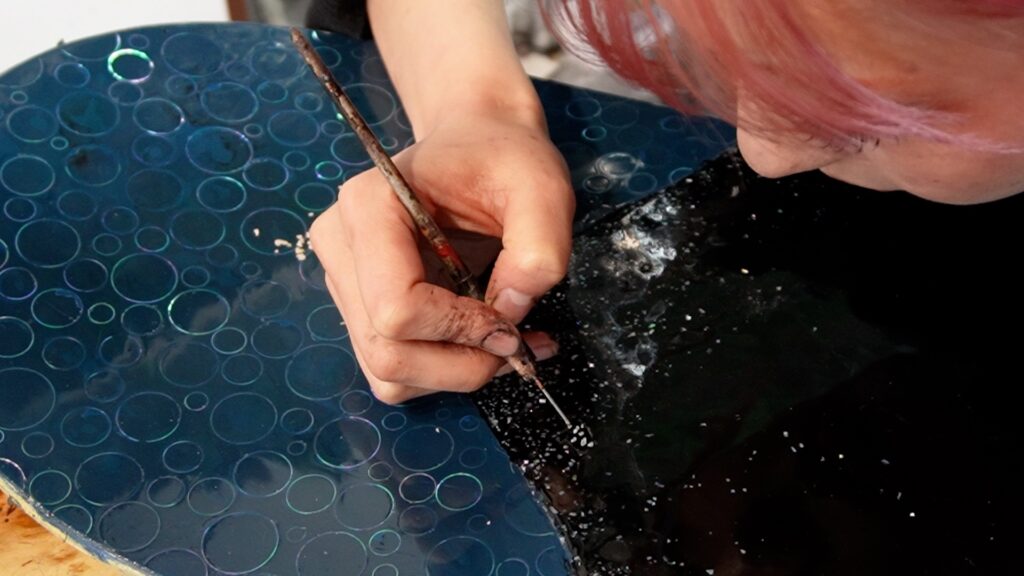 青森県出身の杜野さんは、中学時代から体調が悪化し、不登校になりました。家でアニメや漫画に夢中になり、繊細な絵を描くようになります。通信制高校で学びながら、独創的な絵を描き続けた杜野さん。そんな彼女の人生を変えたのは、親から渡された京都伝統工芸大学校のパンフレットでした。興味を抱き、同校の蒔絵専攻へと進学。漆芸という伝統技法で自分の世界を形にしたいという強い決意がありました。