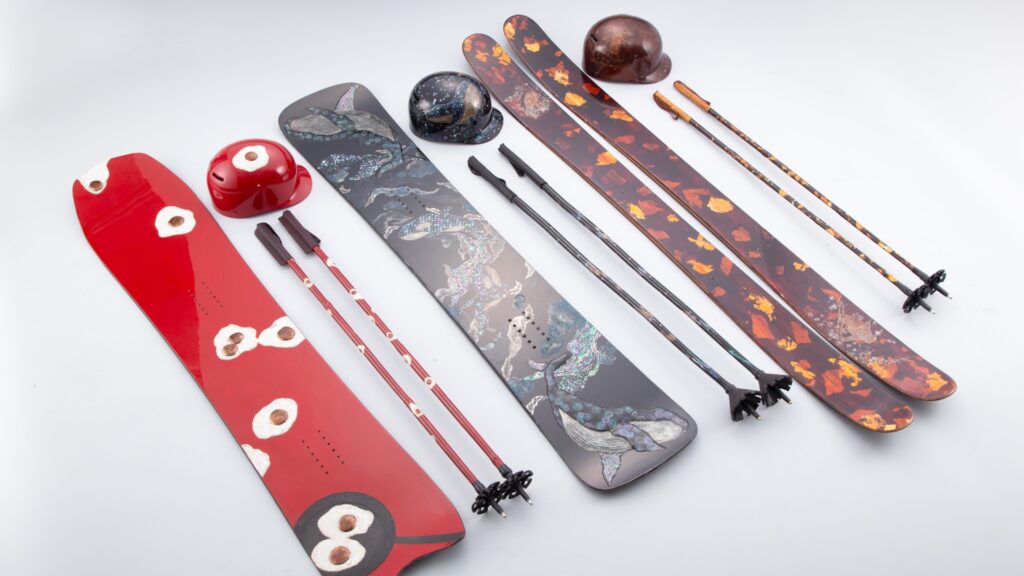 杜野さんが卒業制作で発表したのは、漆塗りのスノーボード用具2セットとスキー用具1セット。話題になったことからすぐに買い手がつきました。卒業後は京都の東山にアトリエを構え、スノーボードやヘッドフォンなどに漆芸を用い、伝統工芸の新たなカタチを模索しています。