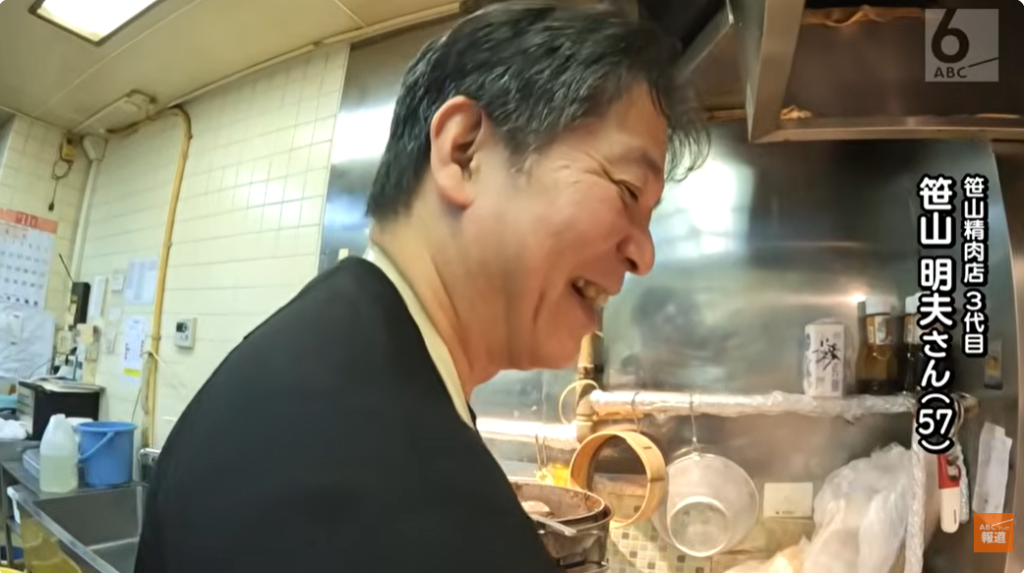 長年愛されるコロッケのルーツは、今からおよそ76年前。笹山さんの祖母が牛すじ入りのコロッケを作り、行商で売ったのがそもそもの始まりとか。その3年後、笹山さんの父・稔さんが牛の捌きを修業で学び、家族で精肉店を開業しました。