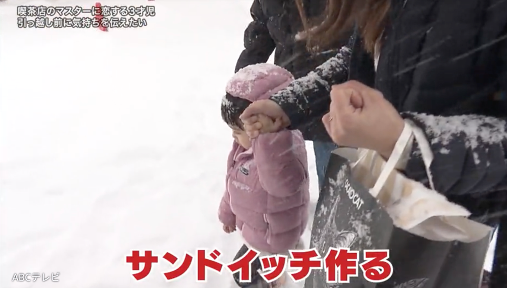 大雪にも負けず、「サンドイッチ作る」とつぶやきながら、お店へと向かうコハちゃん。車の中では二葉探偵のカメラに向けてマスターへの愛をアピールしていたが、本人を前にするとガチガチになり、何も言えなくなってしまうところが愛らしい…!