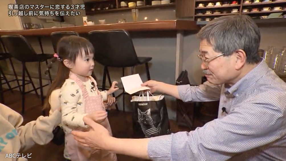 手紙を受け取ったマスターが両腕を優しく広げると、自らトコトコとその腕の中に歩いていくコハちゃん。マスターは「大好き。ありがとう。宝物です」と、最年少の常連さんに感謝の気持ちを伝え、再会を約束した。
