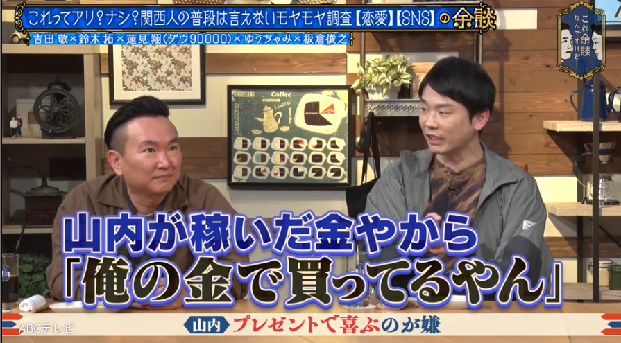 「それはクソみたいな嫁やな」先輩芸人がぶった切り、本人困惑!?かまいたち山内の「嫁からのプレゼントは俺の金」発言が再び話題に!
