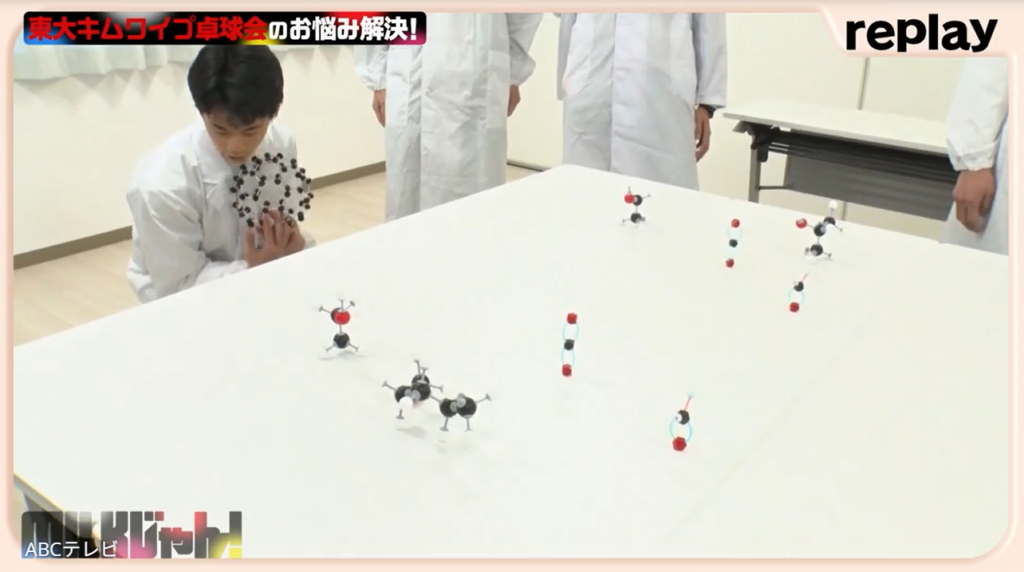 事前に「倒してOKです!」「全然大丈夫!」と言っていた東大生たちだが、想像以上に派手に吹き飛んだ分子模型ピンに大慌てで苦笑い。佐野も、「壊してしまったかも」と言わんばかりに焦った表情になったが、東大生たちから「くっつくので大丈夫です!」と言われると心底安堵し、それでもきちんと「ごめんなさい!」と謝った。