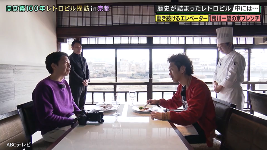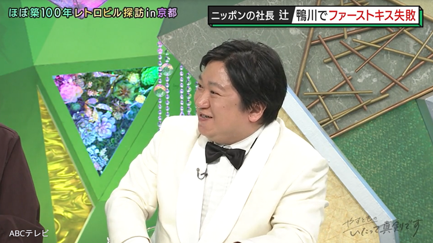 『ダブルインパクト』初代王者・ニッポンの社長が、海原やすよ・ともこが司会を務めるバラエティ番組『やすとものいたって真剣です』(ABCテレビ)にゲスト出演! 京都のレトロ建築を特集した同番組では、鴨川の近くを通ったことがある人なら一度は必ず見たことがあるであろう、築99年の登録有形文化財・鮒鶴(ふなつる)が紹介された。