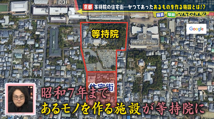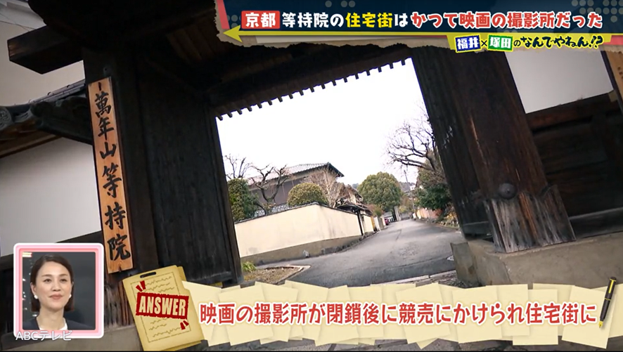 京都市北区にある「等持院」と記された立派な門をくぐると、そこはもちろん境内……ではなく、普通の住宅街が広がっている!? A.B.C-Zの塚田僚一とABCテレビの福井治人アナウンサーが調査すると、この不思議な住宅街に、日本屈指の施設がかつて存在したことが判明した!