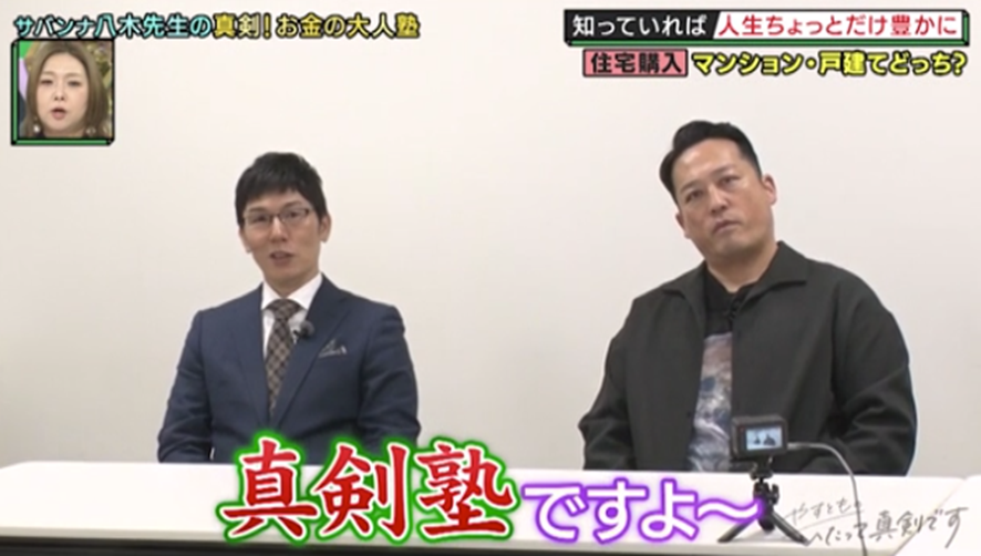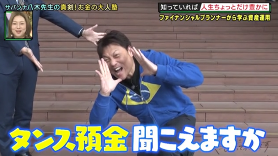 「真剣!大人塾」は、真剣にがんばっている芸人の生活を少しでも豊かにすべく、役立つヒントを授ける企画。今回は、ファイナンシャル・プランナー1級の資格を持つサバンナ・八木先生に、お金にまつわる悩みを持つ2人の芸人が真剣相談! リポーターの浅越ゴエとともに、ここ数年で一気に注目度が増している「資産運用」のノウハウを教えてもらう。