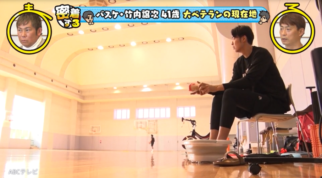 41歳のレジェンドとは、Bリーグ・大阪エヴェッサのキャプテン・竹内譲次選手のこと。大阪で生まれ育った竹内選手は、中学生でバスケットボールを始め、名門校・洛南高等学校でウインターカップを制覇し、大学生で日本代表選手となり、数々の国際大会で活躍。身長2メートル7センチの竹内選手に、お笑いコンビ・ぺこぱは、「天井届きそうじゃん!」「おっきい!」「かっこいい!」「年齢よりも若く見えない!?」などとビックリだ。