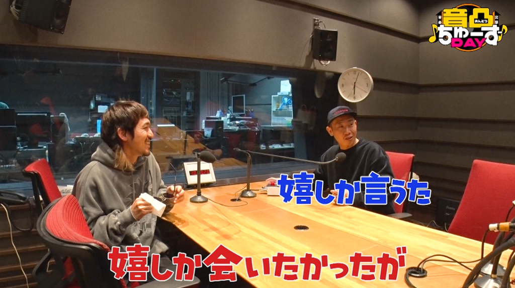 「ジャカ☆ジャ~ン」と凸撃するMC下埜に驚きながら「お久しぶりです」と挨拶するKEEN。鹿児島出身の彼に、下埜が鹿児島弁で「嬉しか~。会いたかったが~」と声をかけるも、「急にどうしたんすか?」と戸惑う2人…。