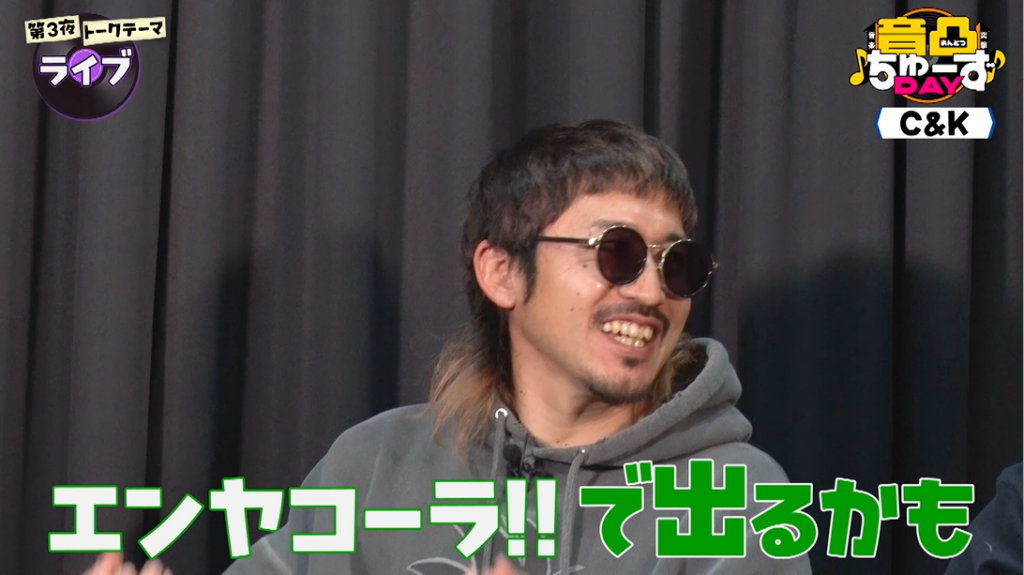 「バラードで出るかもしれない」し、「エンヤコーラ!!で出るかもしれない」と、なぜかサザンオールスターズの楽曲を歌い始める2人…。