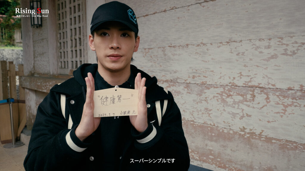 「ようこそ沖縄へ!」と取材班を迎えてくれた小波津は、家族で毎年参拝を続けてきたゆかりの神社へと足を運んだ。デビュー以来となるアルバム制作、そしてワールドツアー。PSYCHIC FEVERにとって、今年は大きな飛躍の年となる。グループを代表して、その成功を祈願し絵馬に書いたのは、「健康第一」という文字。「健康第一で、止まることなく、馬のように進んでいきたいという意味も込めて」と言う。