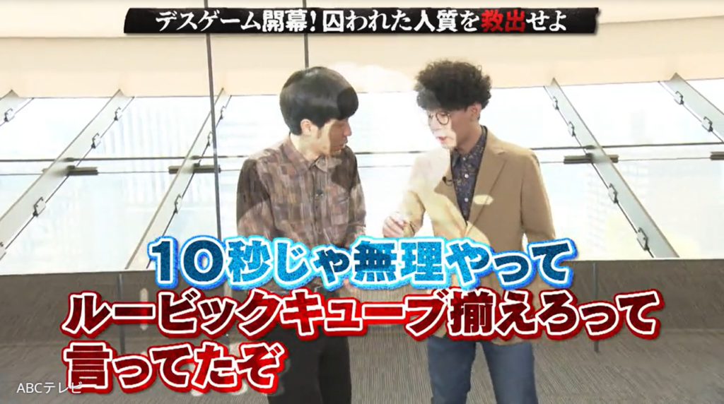 「まず、そこに転がっているルービックキューブを10秒以内に揃えろ。失敗すれば、ねんどを殺す」というジグロウの衝撃発言で、“デスゲーム”は突然開幕! 状況が理解できない赤木裕は、「10秒じゃ無理やって!」と戸惑い、きむらバンドは「いや、いけいけ! 何かわからんけど早くやらなきゃ!」と必死だ。