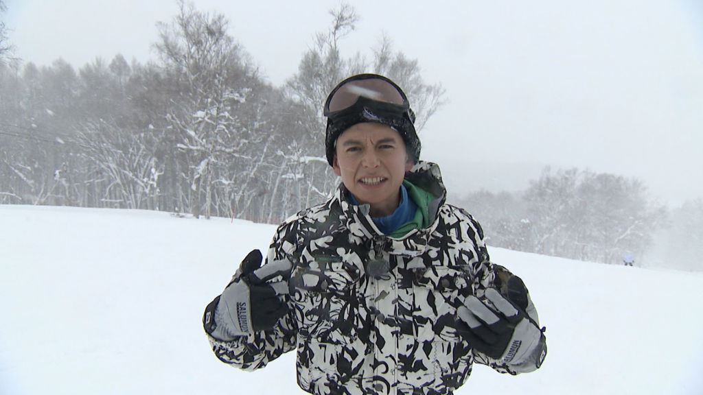 群馬県利根郡みなかみ町のスキーリゾートに現れたハリー。イギリス人の父と日本人の母を持ち、父方の先祖はイングランド王という高貴なルーツを持つ。