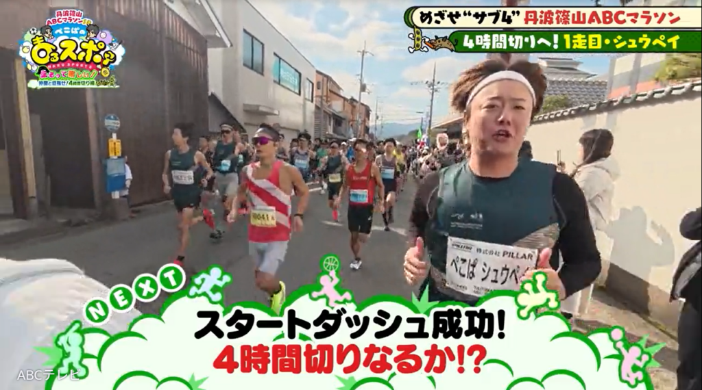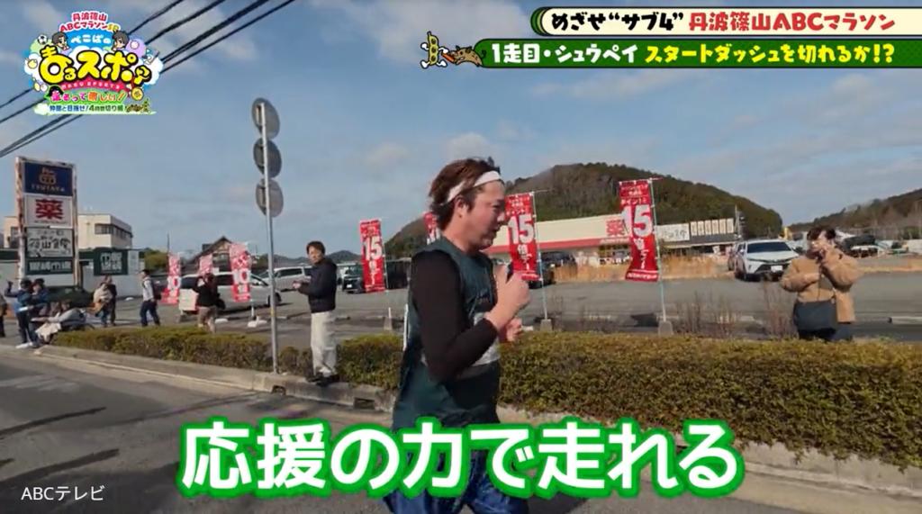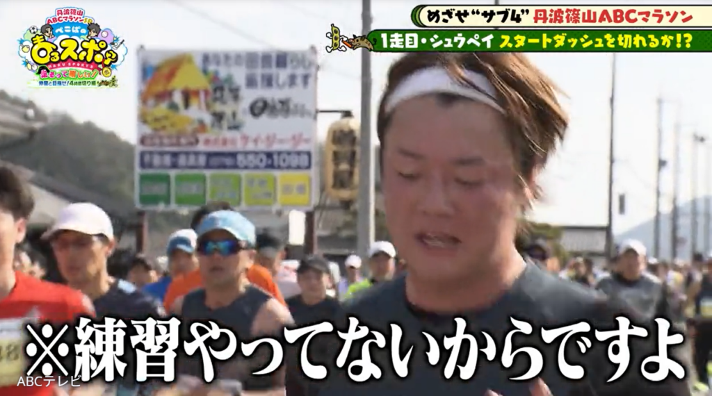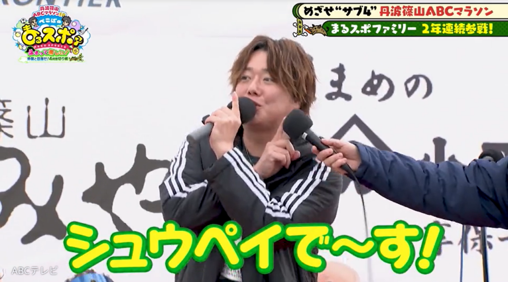 なお、シュウペイの奮闘を含む第46回丹波篠山ABCマラソンの映像は、3月8日に放送されたスポーツバラエティ番組『ぺこぱのまるスポ』の「丹波篠山ABCマラソンSP~走るって楽しい!仲間と目指せ!4時間切り編~」(ABCテレビ)で公開された。