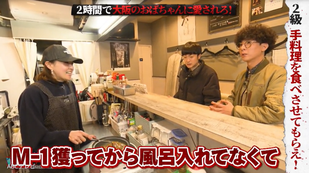 そんなたくろうの救世主となったのは、立ち飲み居酒屋を営む49歳の女性。彼女は、定休日の店をわざわざ開け、手作りの“和風おでんアテカレー”を振舞ってくれた。大喜びのたくろうは、最後のミッションもクリアすべく、「実家暮らしじゃなくてお風呂入れてない」「M-1獲ってから風呂入れてなくて」とウソをついたが、女性オーナーに見破られてしまった。