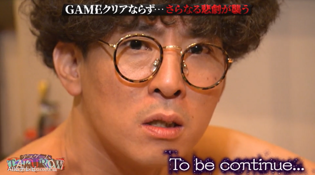 制限時間に間に合って安堵するたくろうだが、彼らが入ったのは“おうちのお風呂”ではないため、ミッションは失敗! その事実を知った2人は、「なんやねん!」「それわかってたんやったら、これ(=釣り用バッグ)出てきた時点で言え!」「なんのためにやってんねん俺らこんなこと!」とカメラに向かって抗議したが、デスゲームの進行者には届かなかった。