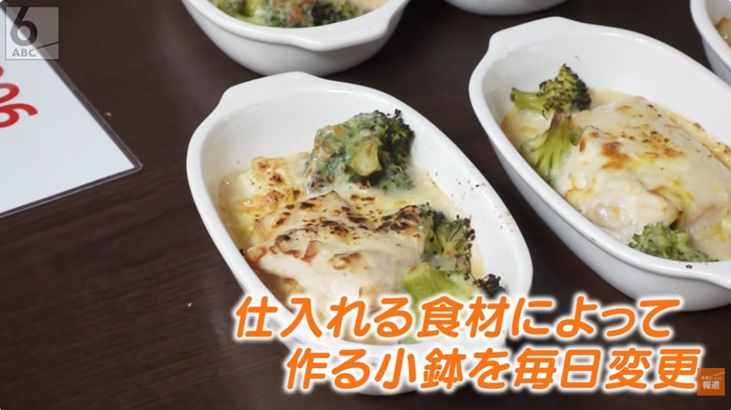 拓海さんが買い出しを終え、店に戻ると朝8時。従業員も続々と出勤し、朝の仕込みも一気にペースアップ! 小鉢の準備が着々と進みます。朝の仕込みで一番大変なのがこの小鉢で、なんと毎朝100個以上も作るのだそう。