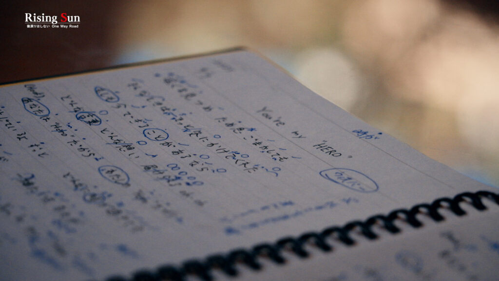 カメラは再び、レコーディング現場に。そこで、びっしりと何かが書かれた小波津のノートが目に入った。「(EXILEの)ATSUSHIさんと歌った時から改めて記録し始めました。自分がボーカルとして表現したいものを書いて可視化しています。これがないと、自分色になりすぎる。僕は、それが嫌なんです。楽曲に寄せるのがモットー。心にスッと入ってくる声を目指しています」という小波津。楽曲において声は自分のものではない。曲のためにあり、聞き手のためにある。その声は曲の世界観に捧げられる。多様なジャンルを横断するPSYCHIC FEVERの核となる表現力がそこにあった。そして今日も、その感覚を彼は記録する。