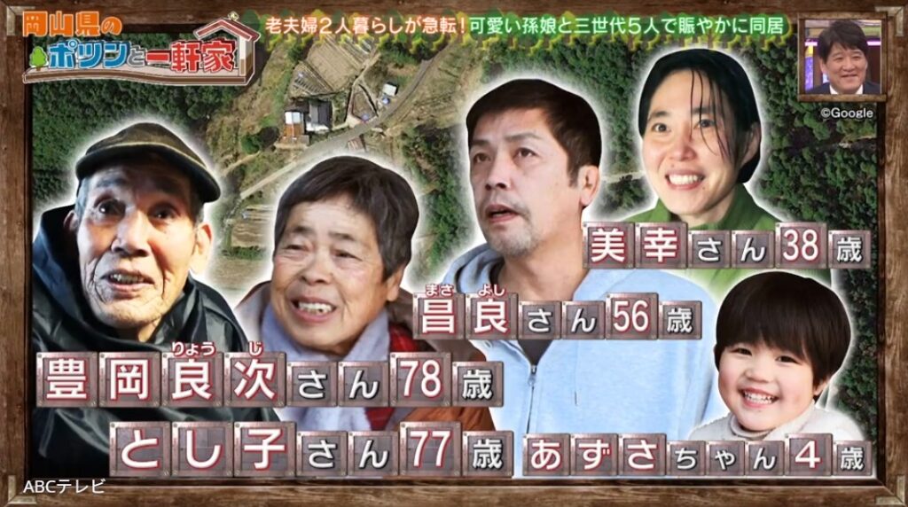 【TVer】岡山の山奥、親、子、そして4歳の孫という3世代で、にぎやかに暮らすポツンと一軒家へ