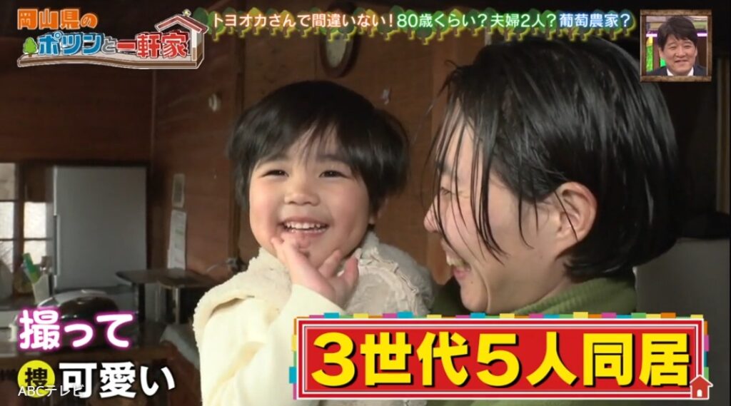 お宅を訪ねてみると、出迎えてくれたのは、小さな女の子。この家には、ご主人(78歳)、奥さん(77歳)、息子さん(56歳)、お嫁さん(38歳)、孫娘(4歳)の3世代5人家族が住んでいた。