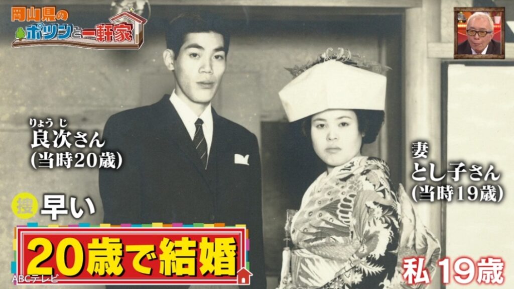 結婚は20歳。鳥取県出身の奥さんとは、お見合いだった。何も知らされずいきなりお見合いした奥さんは、ご主人の第一印象を「背が高い」「優しそうだった」と語り、仲人さんに「嫁に行ったら家事だけしてくれたらいい」と諭され、父とご主人の男二人暮らしの家に嫁いだが、「来てみたら大違い」。「朝早くから晩遅くまでこき使われて。『だまされるほうがアホじゃ』って主人が」と言いながらも「今は、幸せじゃ」と笑う。