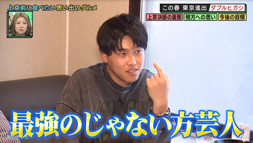 さらに東は、「こいつ(=大東)が気持ちよくお笑いできる環境を整えるのが俺の仕事」と発言。「自分が目立つとか、あんま別に興味ない」「何かを支えている方が自分に合っている」ということで、相方・大東を引き立てる、「最強の“じゃない方”芸人」を目指すと宣言した。
