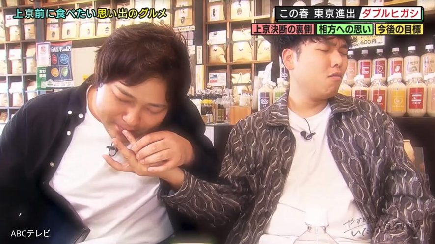 あの実力派コンビとは、芸歴13年目のダブルヒガシのこと。ABCお笑いグランプリ、ytv漫才新人賞決定戦、上方漫才協会大賞といった、関西の賞レースを制してきた。そんなダブルヒガシは、足繫く通った大阪の店を訪れ、上京前に食べておきたい思い出の料理を味わいながら、これまでのことや未来について真剣に語り合った。
