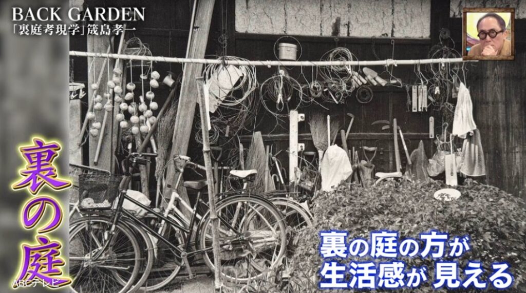 昼間に電化製品の修理を依頼された家庭を訪問し、仕事の合間にその家の庭を撮影した。その写真を見た写真学校の先生に「表の庭もあるし裏の庭もあるな」と言われ、「女性でいうと化粧をした顔が表の庭、裏庭は洗濯物があったり生活感が見えて面白いと気づいた」のが、「裏庭」を撮るきっかけになったという。