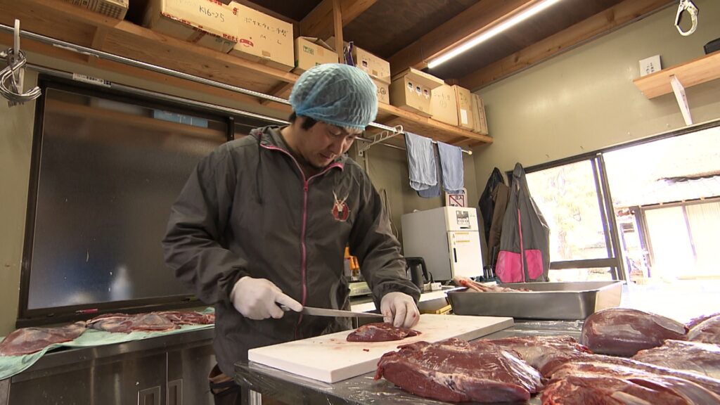 そんな美山町にある築160年の茅葺き屋根の古民家レストラン「ゆるり」は、美山生まれの梅棹レオさんと妻の悠里さんが切り盛りしています。レオさんが持つもうひとつの顔がジビエの解体師。獣害で悩む地元の人たちを助けたいと、10年前に解体場を立ち上げました。